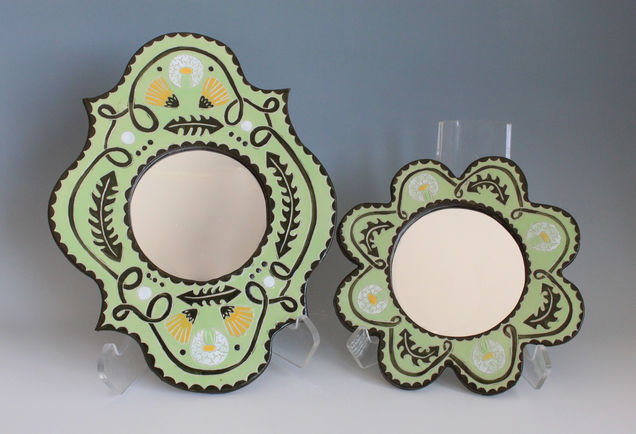 Ceramic forms ornamented with vibrant colors and playful floral motifs, blending practicality with whimsy.